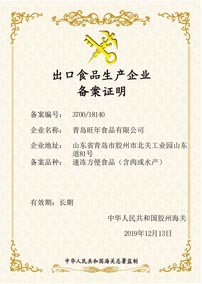 旺年堅持以食品安全作為發展的基石,除通過ISO9001、HACCP等體系認證外,還成為業內為數不多具備出口食品生產資質的企業之一,產品出口美國、加拿大等多個國家和地區。